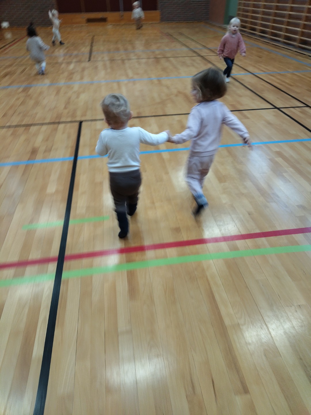 Vi er så heldige å få låne gymsalen på Grøne Bråden skole annenhver torsdag. Det er kjempegøy, og et høydepunkt for små og store!