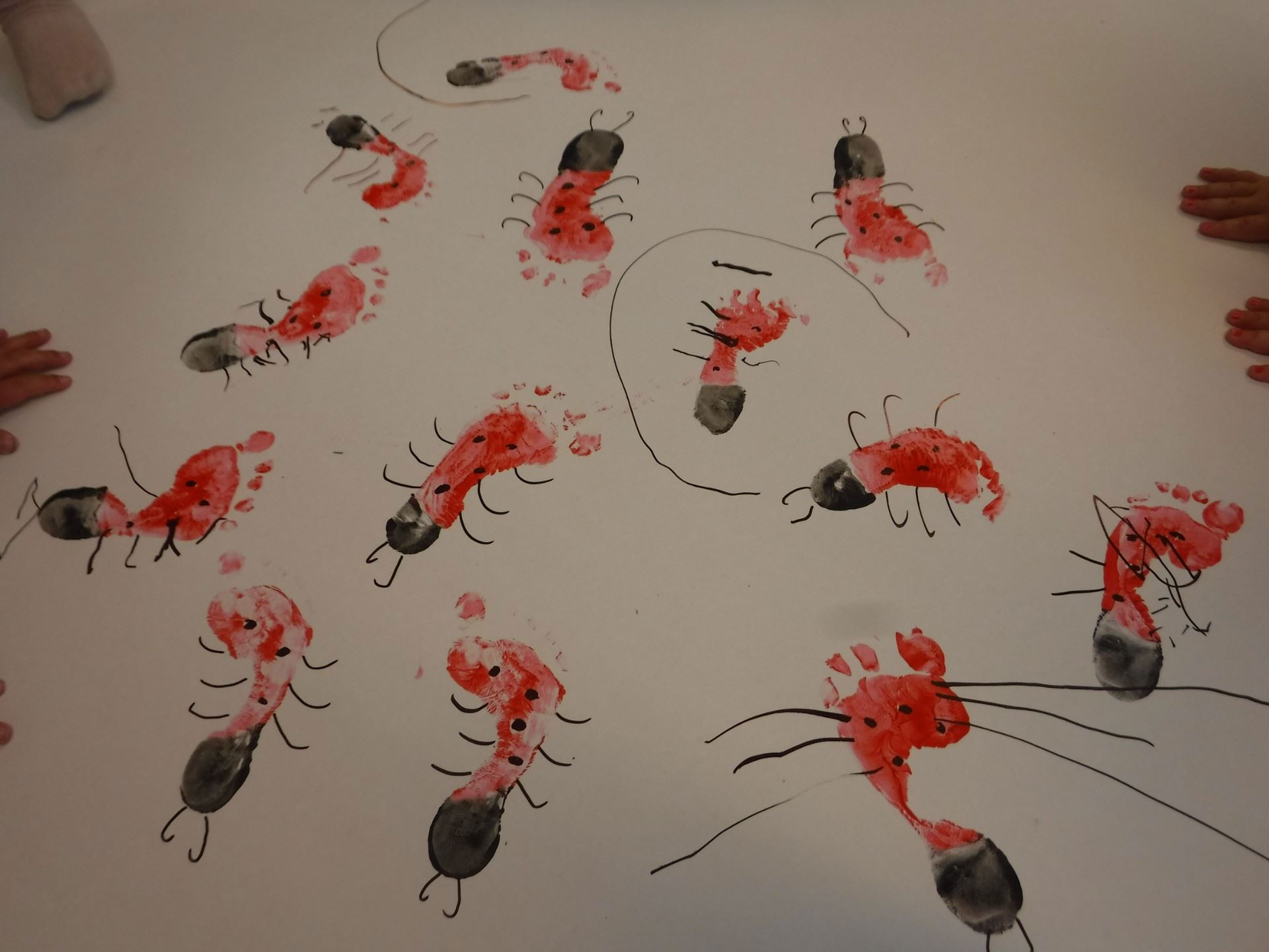 I dag har vi på Sommerfuglene malt fotavtrykk som ble til marihøner. Det kilte da vi malte under føttene;) Barna pyntet de med øyne og føtter...