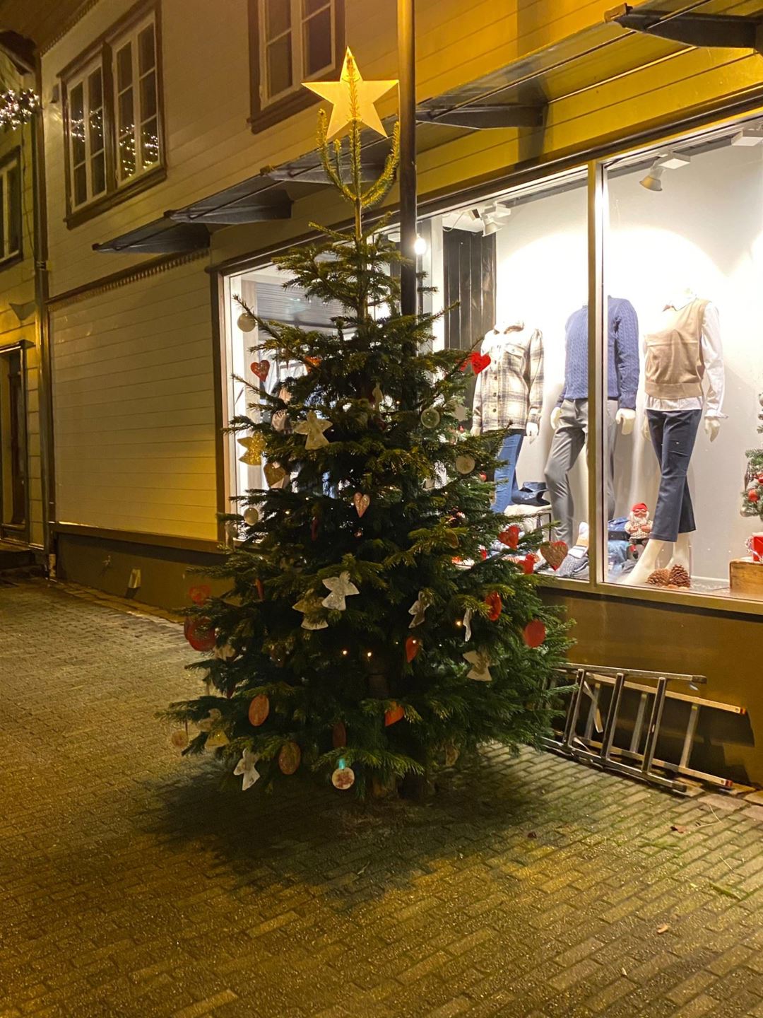 Årets juletre i byen er på plass og pyntet av en engasjerende gjeng fra Raketten I disse covid-19 tider tok vi frem sykkeltrallene og hadde flere turer til byen. Tradisjonen tro ble det også dette året bolle på alle barna.