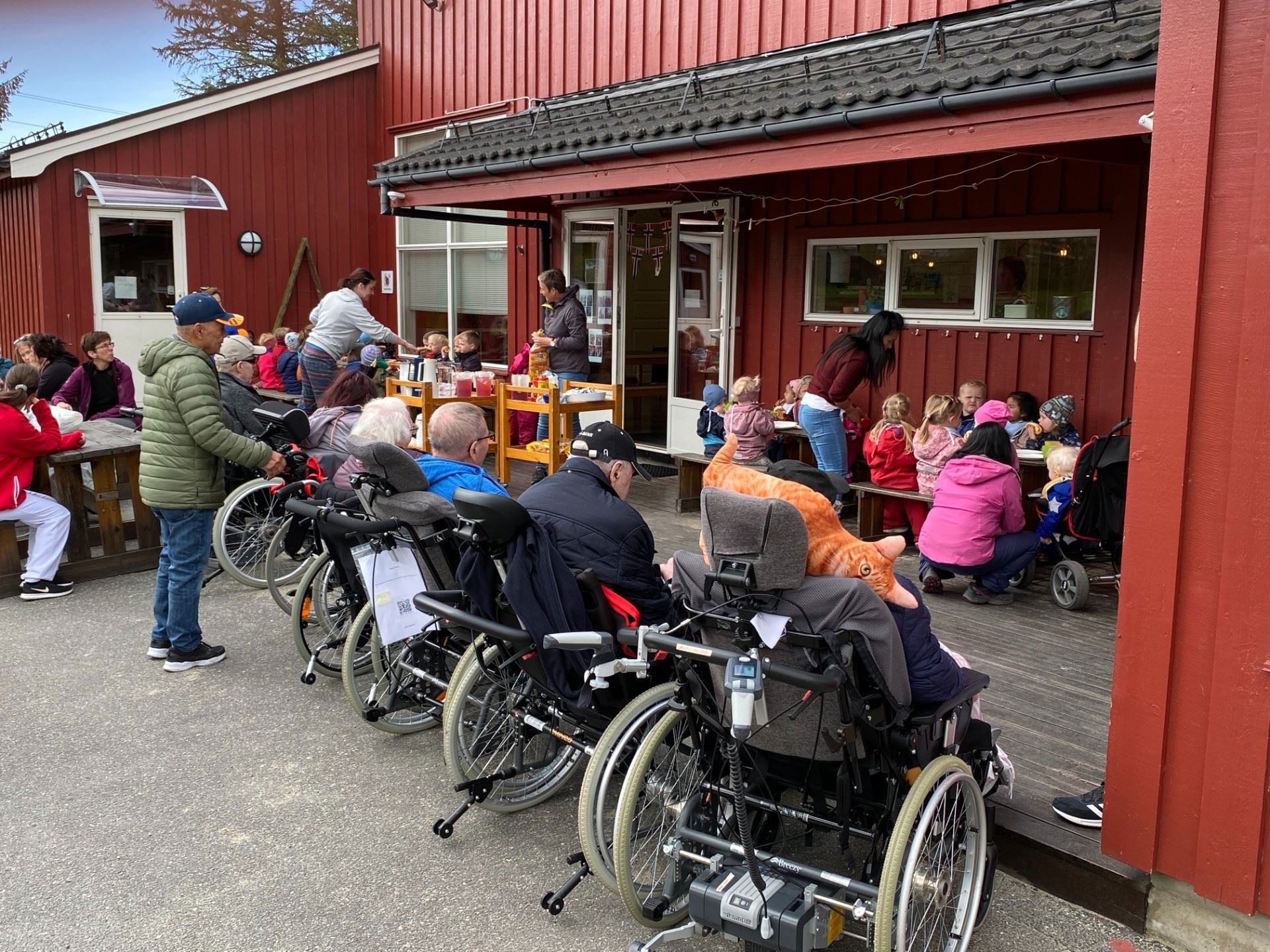 I forbindelse med den årlige livsglededagen hadde vi i dag besøk av pasienter og ansatte fra Lagård 3ABC. Raketten er en livsglede barnehage og har ved flere anledninger besøkt 3 ABC. I dag var det deres tur til å besøke oss i Raketten. Alle, både små, store og eldre så ut til å kose seg en flott vårvær med sol fra nesten skyfri himmel. Gode, varme pølser fra grua, noe godt i koppen gjorde sitt til at stemningen var god. Gjestene koste seg med engasjerte og aktive barn rundt seg. Vi takker for hyggelig besøk og ønsker de velkommen tilbake ved en annen anledning