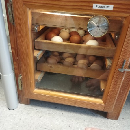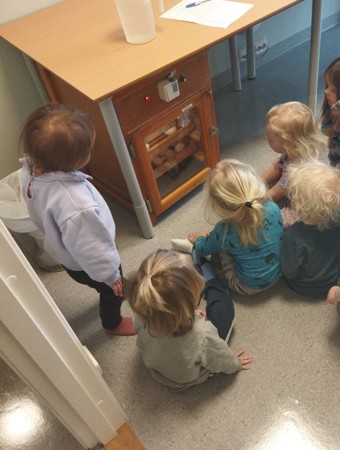 Også i år er vi heldige å få låne rugemaskin og egg. Det er spennende å følge med på hva som skjer med eggene nå frem mot klekking. Uka før påske håper vi at det kommer noen små kyllinger som vi kan kose med.