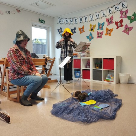 I forbindelse med årets barnehagedag, hadde vi i dag besøk fra Kulturskolen ved Ingvild Berger og en elev som hun hadde med seg Tema for Barnehagedagen dette året er: Stedet mitt, med fokus på nærmiljø og samfunn. Ingvild møtte et lydhørt publikum som fikk høre sang og musikk og fortelling fra fisketiden i Egersund. Takk for et hyggelig besøk og velkommen igjen