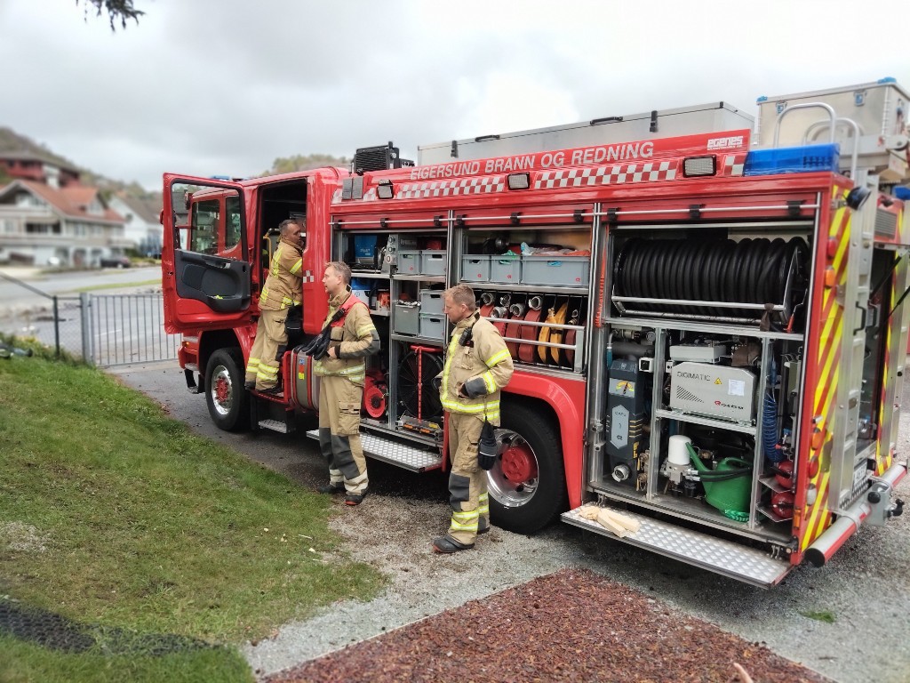 På torsdag var vi så heldige at vi fikk besøk av brannbilen og ekte brannmenn. Da fikk vi se og prøve utstyret de har med seg i bilen.