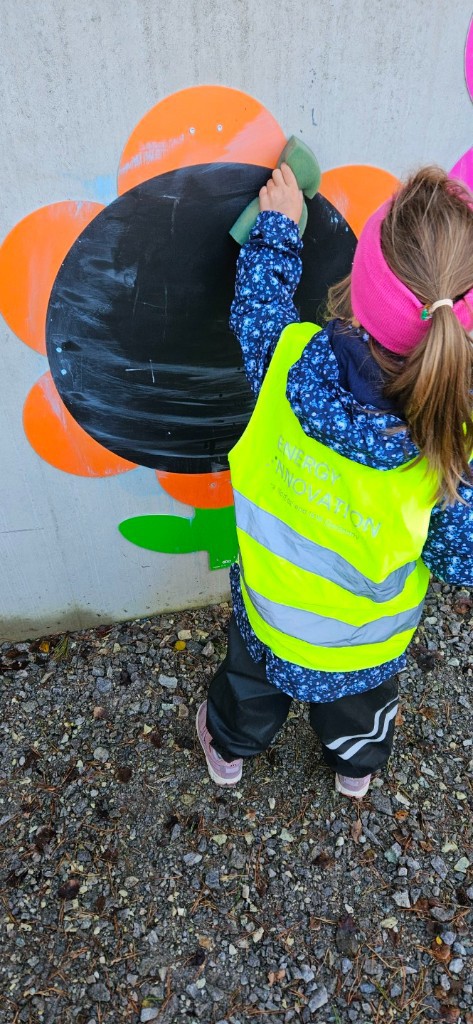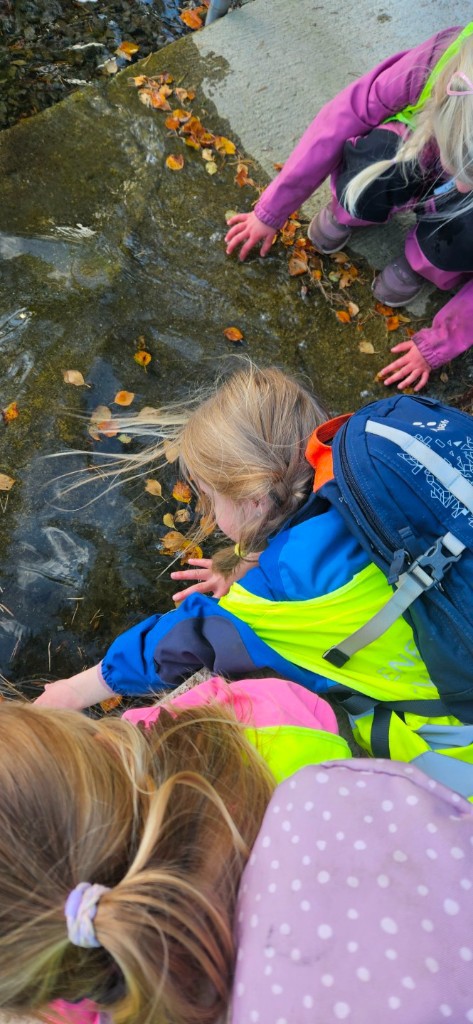 Onsdag og fredag er turdager. Da utforsker vi nærområdet, enten om det er i lekeplass eller skog og mark. Nå er vi i slutten av september, på vei inn i oktober - høsten, og da er det kjekt å følge med på hva som skjer ute i naturen i den overgangen fra sommer til høst, og ha aktiviteter som å lage høstbilde.