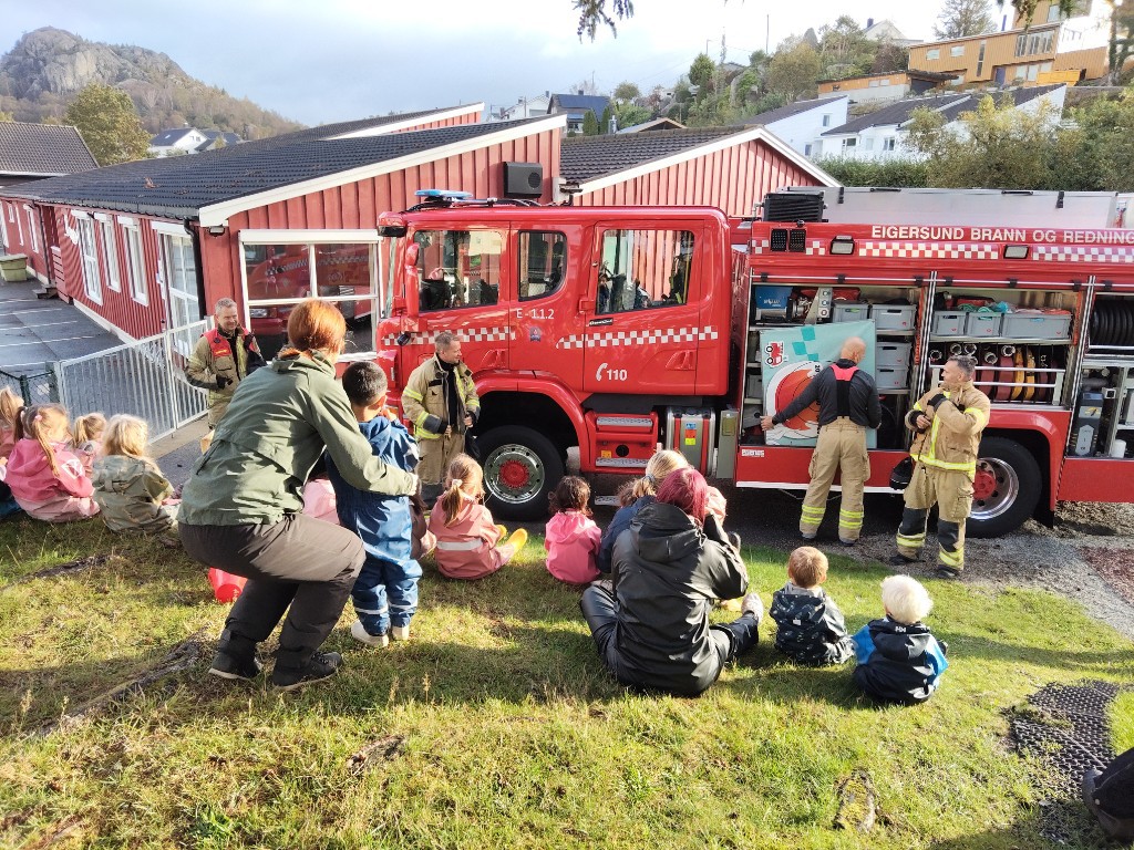 I uke 38 var det den internasjonale brannvern uka. I den forbindelse har vi hatt samlinger om brannvern, Bjørnis, og fått besøk av brannbilen - veldig stas å få "slokke brannen" med brannslangen!